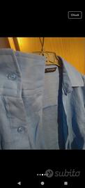 Camicia o blusa di lino 100%, con grande fiocco davanti, taglia M , ampiezza spalle48 cm , circonferenza seno 100 cm, lunghezza davanti 40 cm, lunghezza dietro 60 cm #giacchetta #blusa #azzurro #lino