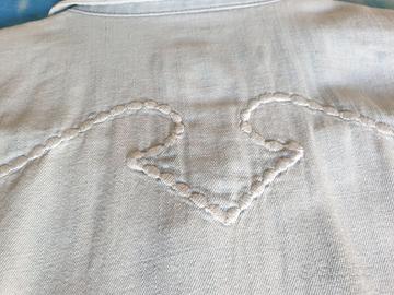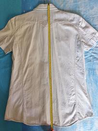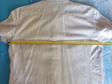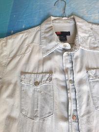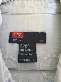 Bellissima camicia da uomo marca DIESEL in cotone jeans, indossata poche volte, colore chiaro con bottoni automatici e ricami sul davanti e retro