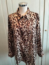 Ampia camicia donna animalier in raso Oltre. Taglia 46. Bottoncini in madreperla. Ottimo tessuto in raso, facilmente lavabile, non stropiccia. Spacchetti laterali. Misure: Spalle 42- da ascella ad ascella 55- vita 57 (da cuciture laterali)- al fondo 64- lunghezza 70 cm. Bottoncino di scorta. Indossa poche volte, ottimo prodotto sia per le condizioni e per la garanzia della marca.