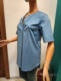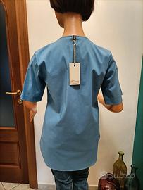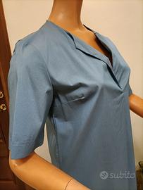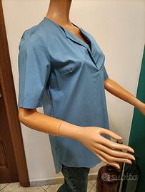 Camicia donna asimmetrica, mezze maniche, scollo a V, colore azzurro/carta da zucchero. Composizione: 70% Cotone - 26% Poliammide - 4% Elastane. Taglia S. Misure: Spalle 39 Cm - Torace 45 Cm - Lunghezza 69/75 Cm. Video articolo e altri articoli disponibili sul profilo facebook 2EFFEMOD