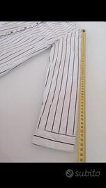 Camicia da donna bianca a righe nere, non elasticizzata.