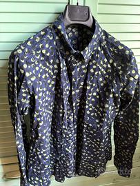 Vendo per inutilizzo camicia da donna blu con palline verdi, marca BENETTON. Taglia XS