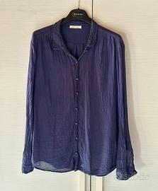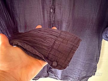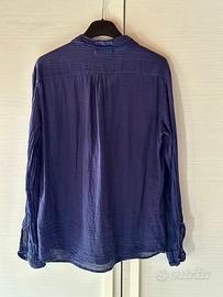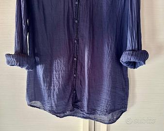 È una camicia in cotone morbido e leggero, fresca. Effetto stropicciato. Bottoni rivestiti dello stesso cotone della camicia