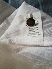 Fantastica camicia manica corta anni 90 collezione Monica Magni. Fantastica sia accompagnata da abbigliamento sportivo che elegante. Dettagli molto ricercati. Taglia 42, tessuto 67% cotone e 3% poliammide, leggermente trasparente, impreziosita da pizzi e da originali bottoni bronzati, con collo a punte lunghe e fascetta alta .Maggiori dettagli a richiesta. La camicia è nuova, mai indossata nè lavata. Euro 25. Ritiro o spedizione a carico dell'acquirente.