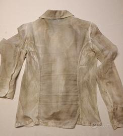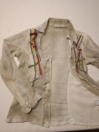 Camicia Didier Parakian, colore con piccola fantasia e beige ed applicazioni colorate sul davanti, taglia 40 ma comoda vestibilità e confort