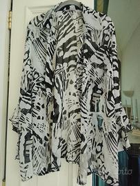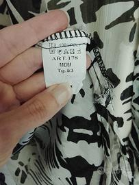 Camicia da donna sia elegante che per contesti meno formali. Poliestere. Made in Italy. Usata ma poco. In ottime condizioni. Con ancora il bottone di ricambio attaccato all'etichetta interna, come mostro nella foto. Taglia 53, come da etichetta mostrata in foto.