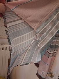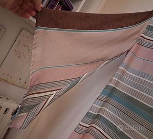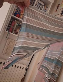 Fantasia rigata, maniche lunghe che sia allargano ampiamente verso il polso. Scollo a barca
