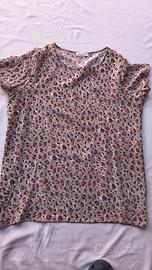 camicia donna in seta fantasia beige arancione nero maniche corte