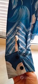 vendo camicia da donna nuova mai usata, di colore blu con stampa floreale, bella molto elegante leggera con vestibilità comoda, taglia unica