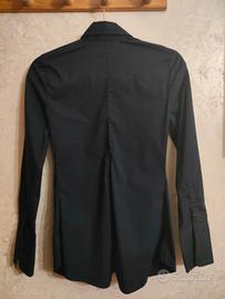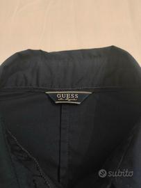 Bellissima camicia originale Guess in cotone elasticizzato color blu notte, a maniche lunghe con polsini larghi a tre bottoni tutti firmati.