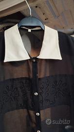 Bellissima camicia donna con colletto bianco e motivo ricamato con fili argentati. Taglia M
