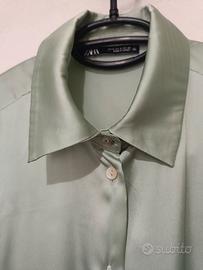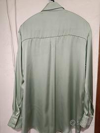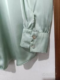 camicia donna in raso verde salvia, taglia S ma veste come una M, usata solo una volta ma nuova