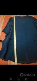 Camicia donna in voile blu totalmente doppiata con lo stesso tessuto per evitare trasparenze. Taglia 44, misure in foto. Nuova con cartellino.