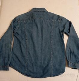Camicia donna jeans marca Casucci, due tasche con patta all'altezza del petto, bottoni automatici. In cotone. larghezza spalle cm 45, larghezza torace cm 50, lunghezza cm 70. Ottimo stato. Come nuova