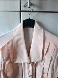 camicia da donna vintage anni '80realizzato inmisto seta, caratterizzato da una delicata tonalitàcolor pesca. taglia M misure spalle cm 45 lunghezza cm 72 in ottime condizioni