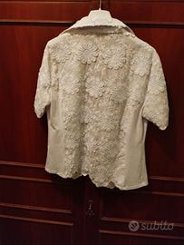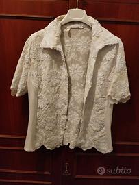 camicia donna manica corta colore bianco con lavorazione pizzo a fiori,Nara camicie vedi foto