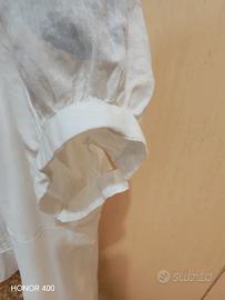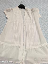 Camicia da donna OVS in colore bianco. Presenta un design con pieghe sul davanti e maniche corte. - Collo alla coreana - Chiusura con bottoni - Dettaglio con lacci in vita - Fondo con balza arricciata