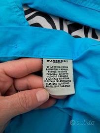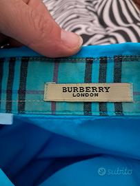 Camicia donna maniche lunghe Burberry taglia M ma l'etichetta con la misura e sbiadita ma vi scrivo le misure precise il colore originale era bianca ma l'avevo pitturata perché mi serviva una camicia azzura per maggiori informazioni scrivetemi larghezza spalle 37cm lunghezza totale 62cm larghezza da ascella ad ascella e di 48cm