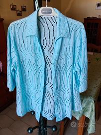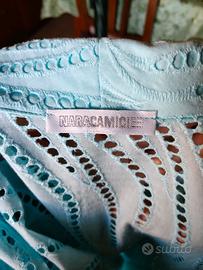*** Camicia Donna "NARA CAMICIE" *** - Condizioni: Ottime, poco usata - Colore: Azzurro chiaro - Stagione: Primavera/Estate - Misure: Spalle 43 cm circa; Vita 52 cm circa - Tessuto: Cotone (motivo/stile trasparente) - Manica: lunghezza a 3/quarti - Chiusura: a 5 bottoni