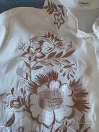 Camicia da donna NARA CAMICIE a maniche lunghe, bianca con ricami 97% cotone 3% elastame tg. IV spalle cm 45 ascelle cm 52 vita cm 45 lunghezza 70, design classico con colletto nuova mai indossata