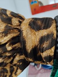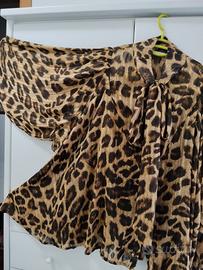 vendo camicia donna a effetto pipistrello usata una volta il tessuto è leopardato con piccoli fili dorati con il fiocco è lunga cm 70 maniche cm 67 spalle cm36 larga cm85 a€20
