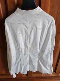 Camicia maniche lunghe PRIMA CLASSE geo bianca e azzurra in cotone leggermente elasticizzato taglia 50