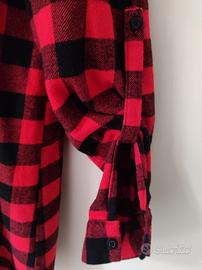 Camicia tg. L di flanella poco indossata, a quadri rossi e neri con taschino anteriore e bottoni sulle maniche per accorciarle.