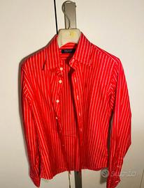 Camicia originale Polo Golf Ralph Lauren da donna, colore rosso con righe bianche verticali.