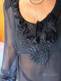Elegante camicetta da donna con un design raffinato. - Tessuto leggero e trasparente. - Dettagli decorativi sul collo. - Maniche lunghe.