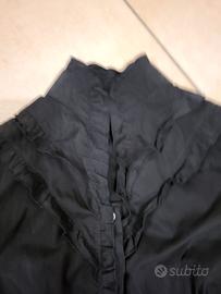 Camicia donna colore nero tg S con balze sul petto made in italy, ideale da cameriera o sotto giacca