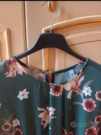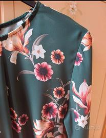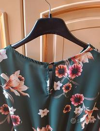Camicia giovanile tessuto floreale fresco con leggera arricciatura in vita,maniche con volant a livello dei polsi. Posteriormente alla base del collo ha chiusura con bottoncino per facilitare quando si indossa. Capo come nuovo,indossato solo una volta.