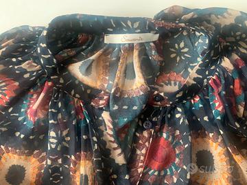 Senza etichetta ma praticamente mai usata. Taglio anteriore con bottoncini, bottoncino presente anche alla manica e collo alla coreana. Plissettata dal collo garantisce un'ampia vestibilità. Caduta morbida che consente vari stili per indossarla
