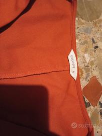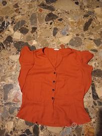 camicia smanicata donna taglia XL con scollo a V e volant.molto bella.in poliestere.colore ruggine