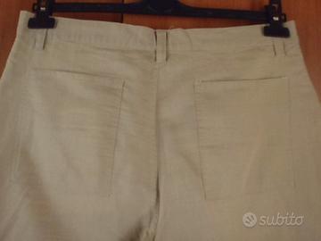 -Pantaloni corti modello classico, tipo bermuda, colore beige in cotone leggero (simile al lino), taglia 50, lunghezza gamba 74 cm, 6 tasche