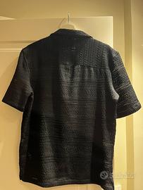 Camicia slim fit realizzata in tessuto molto elasticizzato. Colletto bowling e maniche corte.