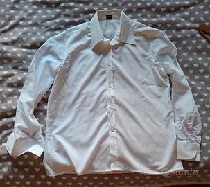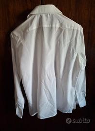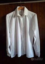 Camicia nuova, mai indossata, ho aperto la confezione per fare le foto. Misura grande 17 e 1/2. 44. Misure esatte : spalle 48 cm, lunghezza 75 cm, manica 66 cm. È di un tessuto sottile, setoso, elegante, liscio al tatto. Come si vede nelle foto non ha pence sul dietro. Marca Mass Auto stir, penso non occorra stirare dopo il lavaggio, essendo nuova non l'ho mai lavata.