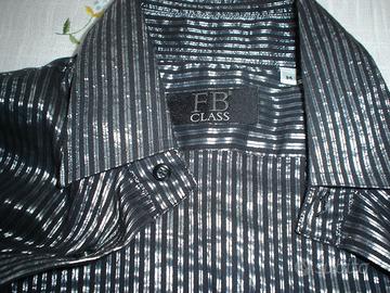 Camicia elegante da uomo taglia M USATA Camicia a righe nere e argento del marchio FB Class. Questo marchio italiano è specializzato in abbigliamento maschile, offrendo capi che spaziano dal casual all'elegante. Caratteristiche del Prodotto Marchio: FB Class (spesso associato a FB Uomo o FB Fashion). Camicia elegante o da cerimonia, caratterizzata da un motivo a righe verticali lucide. Molte camicie di questo marchio sono realizzate in 100% cotone o misto cotone/ spesso con l'aggiunta di filati in lurex per ottenere l'effetto metallizzato delle righe. ------------Taglia M---- COME DA FOTO