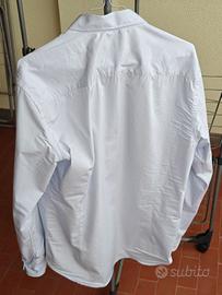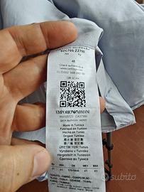 Camicia classica elegante Emporio Armani in cotone color azzurro tenue, colletto alla francese. Condizioni pari al nuovo, poiche' e' stata indossata un'unica volta. Taglia 41 (16), ma veste piuttosto stretta.