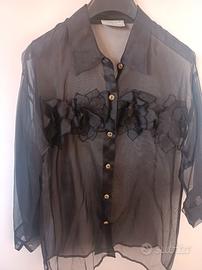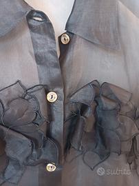 camicia spolverino colore nero in organza fresca con applicazioni e bottoni a contrasto taglia unica circa una 46 Ferruccio Paci