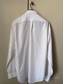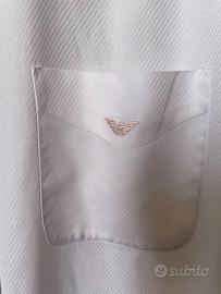 Splendida camicia Emporio Armani originale, color bianco ottico. Il tessuto presenta una raffinata trama a costine diagonali che dona lucentezza e movimento al capo. Dettagli: Taschino frontale con iconico logo "Aquila" ricamato di tonalità dorata. Collo: Classico a punta, perfetto con o senza cravatta. Condizioni: Ottime, come da foto, indossata pochissimo. Tessuto di alta qualità, fresco e resistente. Taglia: 41/16. Vestibilità: Regolare/Classica (Taglio elegante). Un pezzo intramontabile del guardaroba maschile, ideale per occasioni formali, ufficio o un look casual ricercato. Imballaggio accurato e spedizione rapida!