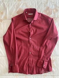 Camicia da uomo rossa con trama, taglia XL, modello elastico.