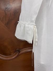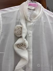 Camicia cotone e organza color latte. Boccioli di rosa in organza impreziosiscono il collo.