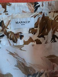 Camicia estiva collo coreano fantasia foglie ampiezza spalle 42 cm lunghezza 70 cm