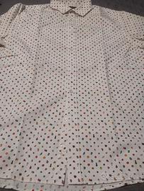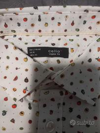 Camicia estiva a maniche corte con una divertente fantasia di frutta colorata su sfondo bianco. Perfetta per un look casual e allegro. - Fantasia all-over di frutta - Colletto classico - Chiusura con bottoni taglia L 41/42 regular fit, usato in ottime condizioni.