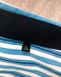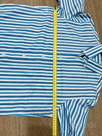 Camicia da uomo manica corta con taschino sul davanti e colletto con bottoni realizzata in cotone 100 %, Taglia L (collo 41/42) per confronto ho messo tutte le misure in centimetri, fantasia rigata e modello come da foto, mai indossata per incompatibilità di taglia, praticamente come nuova, vestibilità regolare, per ulteriori informazioni e maggiori dettagli non esitate a contattarmi in chat.