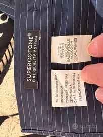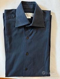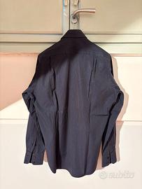 Camicia da uomo, marca Etiqueta Negra, taglia SMALL, blu a righe bianche fini, 100% cotone, usata pochissimo, no rovinata, no scolorita, ottima fattura, circonferenza collo 35,5 cm, 2 bottoni su polsino e due bottoni di ricambio. Ampiezza spalle 44 cm, altezza 76 cm.