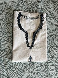Camicetta blusa artigianale etnica in fresco cotone con dettagli ricamati a mano di provenienza africana.