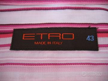 Camicia Etro in condizioni pari al nuovo con particolare tessitura a righe, bottoni marcati e logo ricamato