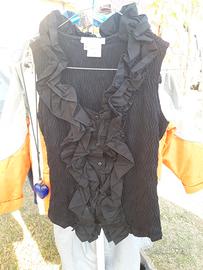 elegante camicia donna nera taglia 42 senza maniche con rouches di Nara Camicie