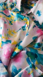 FANTASTICA camicia firmata Flavio Castellani, 92% seta, 8% elastane. Indossata solo per servizio fotografico, quindi qualità oari al nuovo. Colori meravigliosi, la camicia sembra quasi dipinta a mano. Firma garanzia di qualità eleganza e classe. Tg.38. Vestibilità piacevolissima. Nel mio armadio altri abiti e gioielli bellissimi. Un armadio molto grande da scorrere per scoprire anche vere meraviglie.